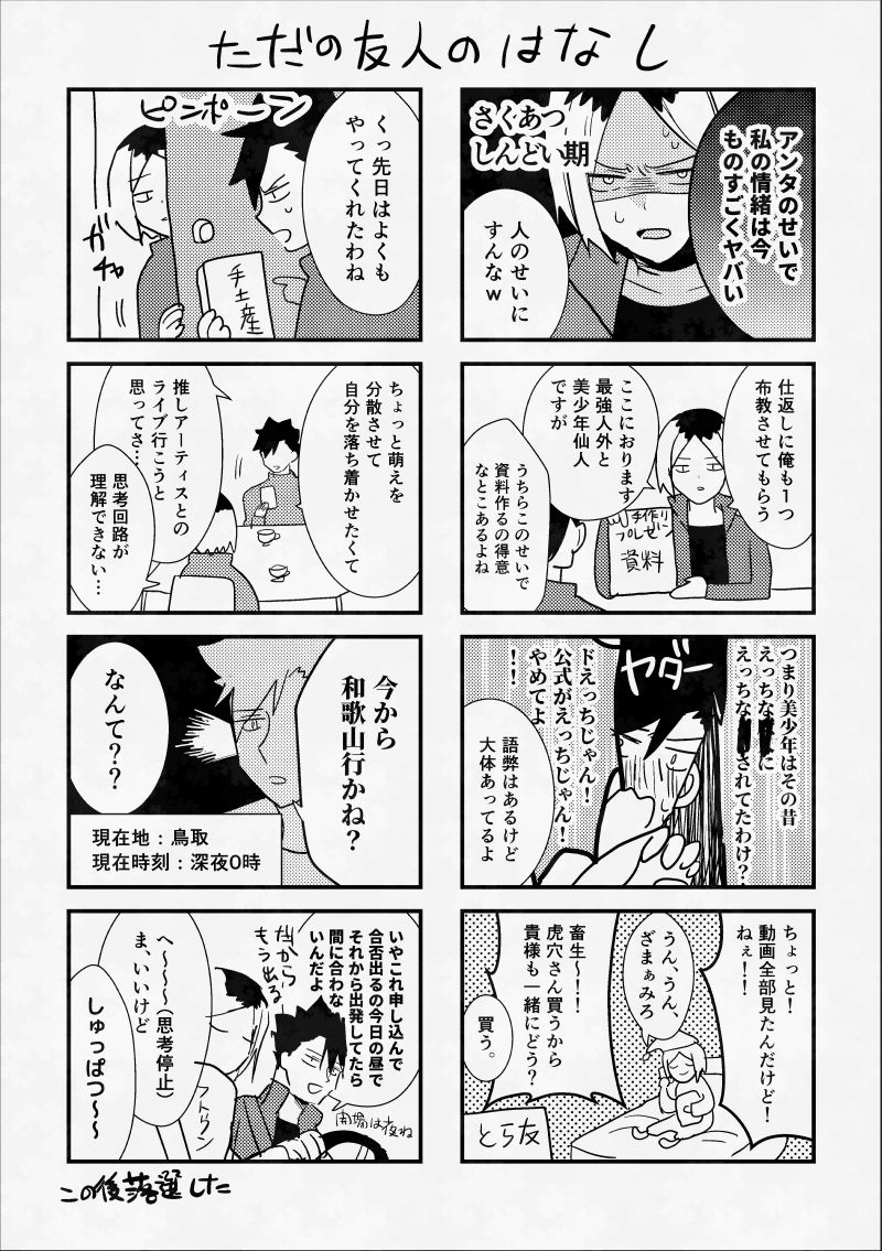 ホーム > HQ! > さくあつ沼るまで日記 漫画 Posted on 2025年08月27日 23:44 Update 2025年08月30日 23:19 favorite19いいね送信中です×※コメントは最大500文字、5回まで送信できます送信送信中です送信しました! コメント返信 送信日時 2025-09-02 20:59:53 の方へ 荒ぶる連打ありがとうございます!?サファリでバグですか…こっちの不具合だったらすみません…!近々アプデ試してみます💦こちらのコメントだけ届いておりました! 毎度見ていただいて恐れ入ります角名侑イチャイチャ描けて一先ず満足しました😊すなあつイチャコラしてほしい😊また本出したいですが次はさくあつ本原稿頑張ります~!!😭 りも。 漫画