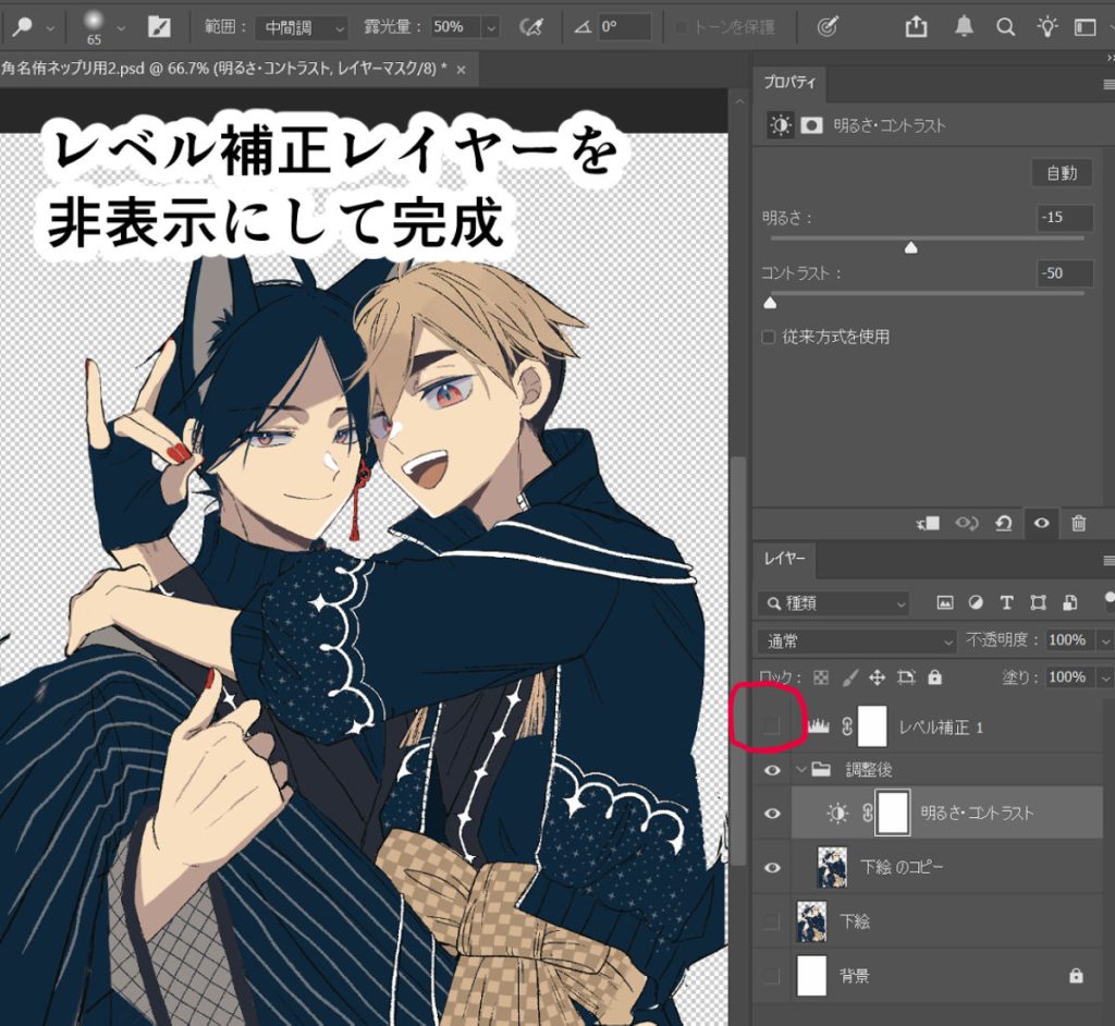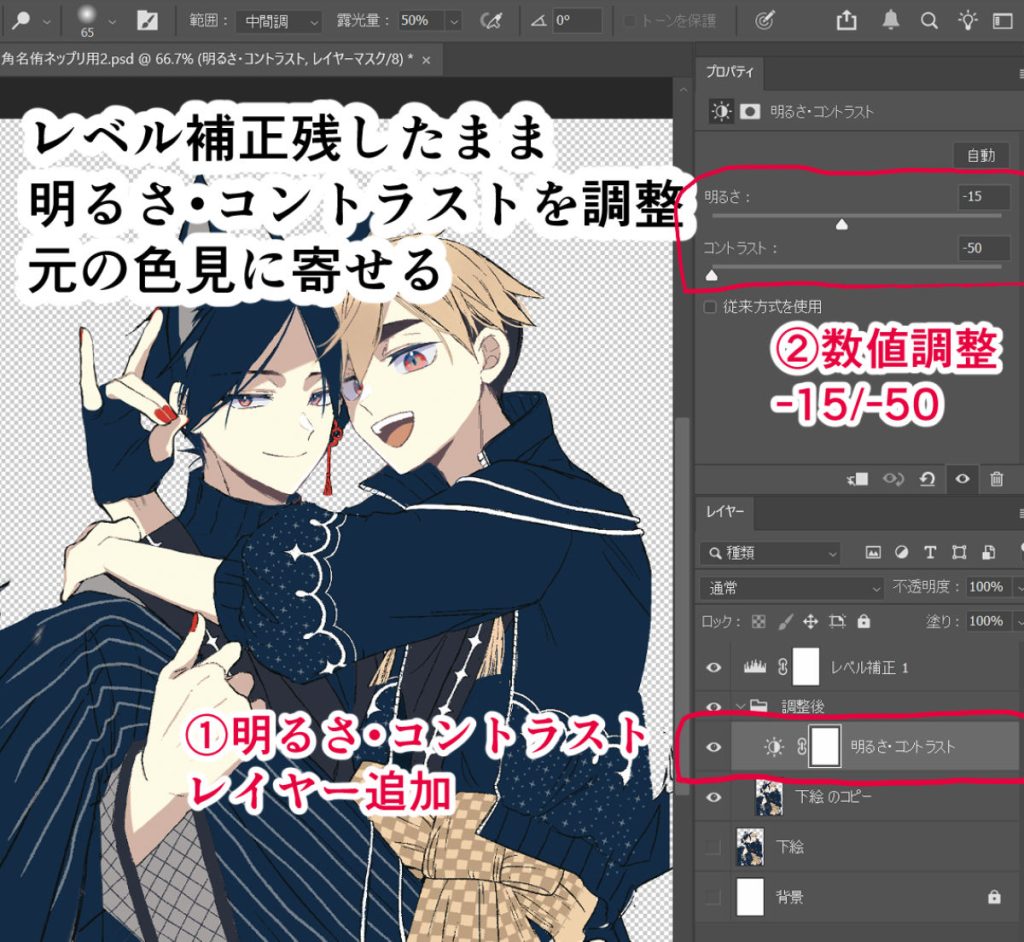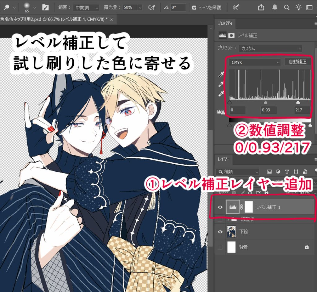 なら元データを「残酷な色」に補正して、さらに「原画の色」に近づくよう補正すればいいわけです。