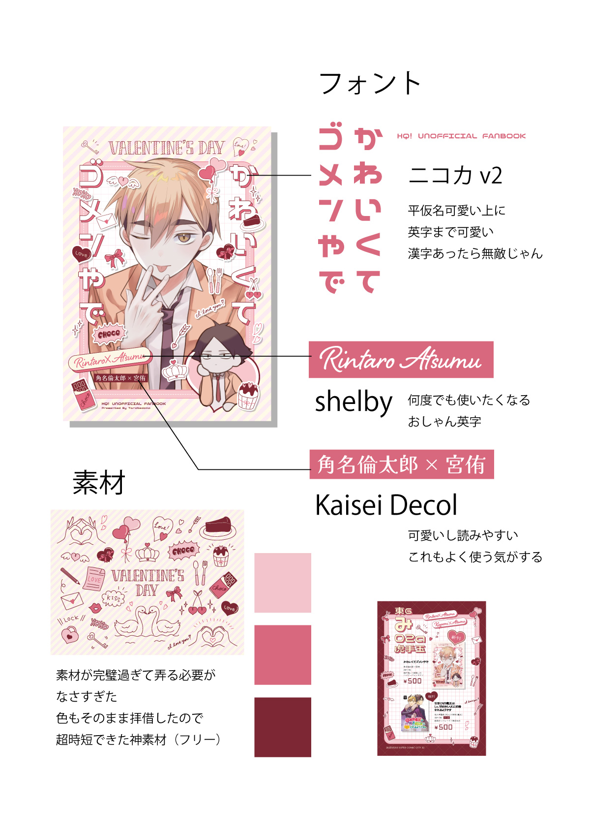 今回はバレンタインがテーマなので、豊富なフリー素材で仕上げました。ありがたや~