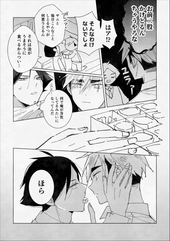すなあつ1度描いてから定期的に角名侑脳になるので供給の少なさが地味に辛いですね😭わちゃわちゃしてる台詞は正直プロット段階では大して浮かばないので、描きながらコマのサイズの都合やら動きの流れで勝手に浮かぶ台詞書いてます。侑は無駄にしゃべらせたい欲あります~~